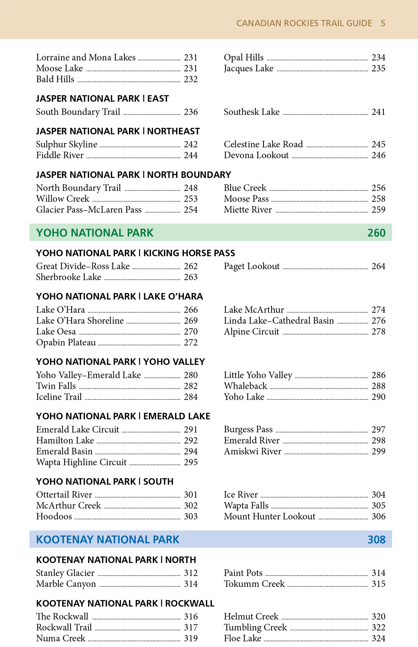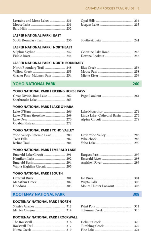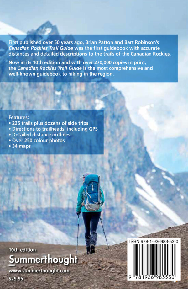 The 10th edition covers more than 3,400 km (2,100 miles) of hiking trails in Banff, Jasper, Yoho, Kootenay and Waterton Lakes National Parks, plus the provincial parks of Mt. Assiniboine, Mt. Robson, Akamina-Kishinena, Peter Lougheed, and Elk Lakes.