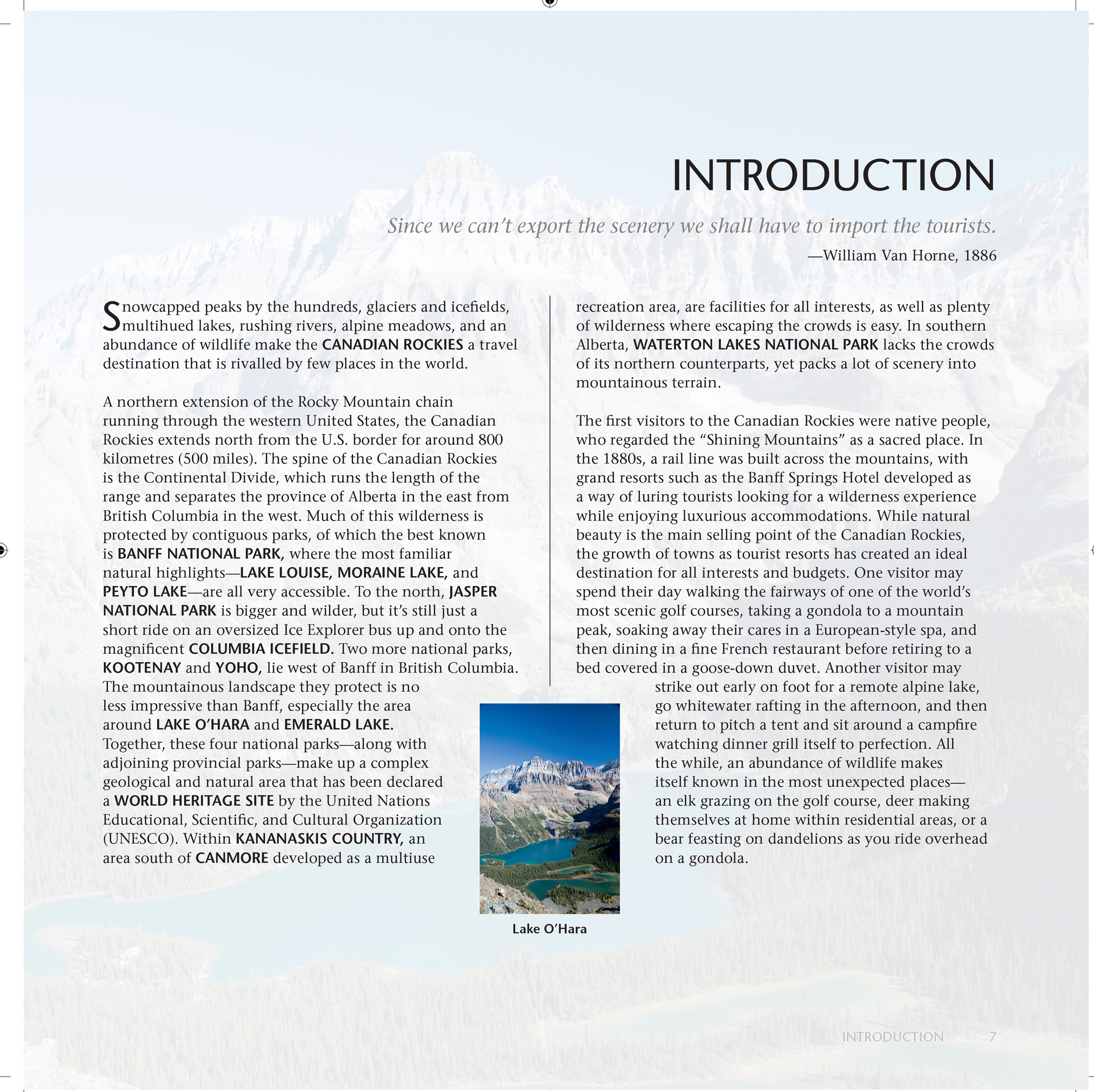 INTERESTING CAPTIONS: Each image is accompanied by an informative caption. Rather than simply describing the photos, the captions provide an insight into the Canadian Rockies.